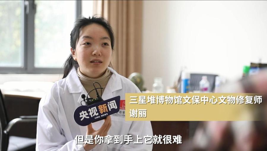 Restauratorin Xie Li ist ein ruhiger Typ. Sie hat bei Guo Hanzhong die Restaurierung von Denkmälern gelernt. Xie genießt es, etwas in Ruhe allein zu erledigen. Die junge Dame, die in den 1990er Jahren geboren ist, arbeitet seit sieben Jahren im Sanxingdui-Museum.