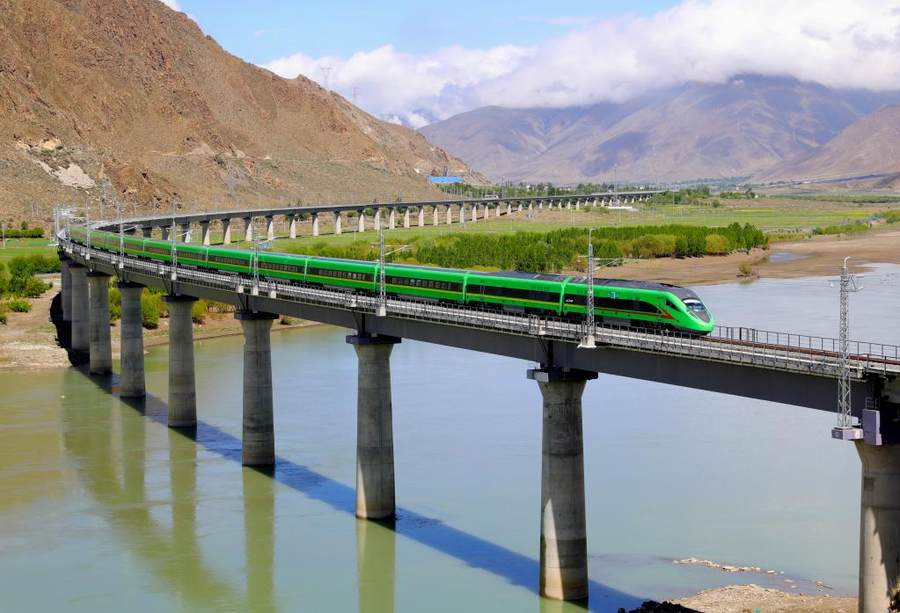 Mit der Freigabe für den Verkehr der ersten elektrifizierten Eisenbahnlinie zwischen Lhasa und Nyingchi im Autonomen Gebiet Tibet fahren nun auch Hochgeschwindigkeitszüge auf dem Qinghai-Tibet-Hochplateau. Das komplette Verkehrsnetzwerk, bestehend aus Luftfahrt, Eisenbahn und Straßenbahn, sowie die vielfältigen Reiseangebote haben den Tourismus in Tibet gefördert.
