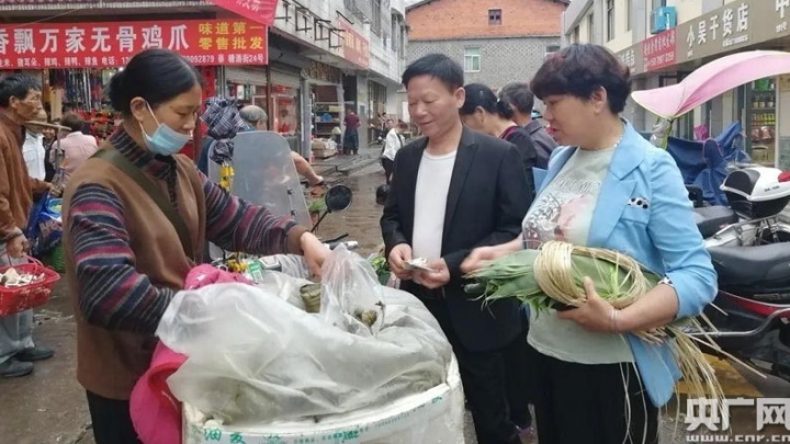 Jeden Morgen auf dem Gemüsemarkt im Bezirk Yujiang in Yingtan (Provinz Jiangxi) sieht man Song Yuhua, die traditionelle chinesische Klebreisklößchen „Zongzi“ verkauft. Täglich um ungefähr 9 Uhr sind die Hunderten von Klebreisklößchen von Song Yuhua ausverkauft ...