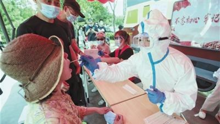 Die chinesische Hauptstadt Beijing führt seit Samstag großflächig Nukleinsäuretests durch. In der Nähe der Geschäftsstraße Xinjiekou im Beijinger Bezirk Xicheng wurde dafür eine von mehreren provisorischen Probe-Entnahmestellen der Stadt eingerichtet...
