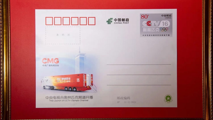Die China Media Group (CMG) hat am Dienstag in Beijing feierlich eine Sonderpostkarte für den CCTV-Olympiakanal vorgestellt. Der Nennwert der Einzel-Postkarte mit Inventarnummer JP264 beträgt 0,80 RMB, verkauft wird die Sonderpostkarte ab Mittwoch für 1,2 Yuan.
