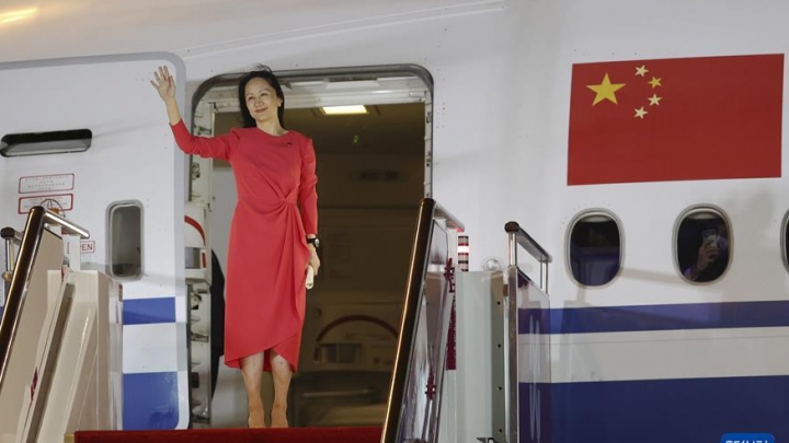 Am Samstagabend ist die frühere Huawei-Finanzchefin Meng Wanzhou auf dem Flughafen Bao'an von Shenzhen eingetroffen. Als sich die Luke öffnete, trat Meng aus der Kabine und winkte den Anwesenden zu. Meng war rot gekleidet, in der gleichen Farbe wie die rote Fünf-Sterne-Flagge auf dem Rumpf...