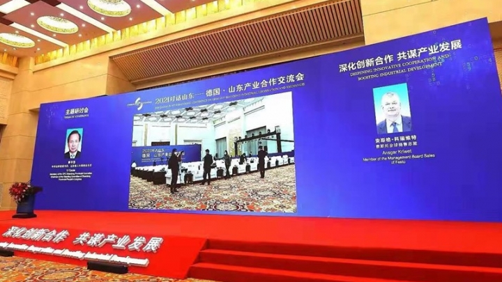 Unter dem Motto „Verstärkung der Innovation und Kooperation für eine gemeinsame industrielle Entwicklung“ tauschten die Teilnehmer aus Shandong und Deutschland Meinungen über die Förderung des Dialogs zwischen den Regierungen sowie über die industrielle und Projektzusammenarbeit aus.