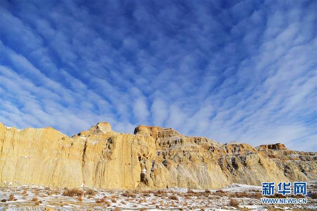 Diese am 26. November aufgenommenen Bilder zeigen einen Blick auf die sogenannte Meeresteufelsstadt am See Wulungu. Das Tourismusgebiet Meeresteufelsstadt befindet sich am östlichen Ufer des Jili-Sees im Landkres Fuhai in Altay (Uigurisches Autonomes Gebiet Xinjiang). Hier findet man überall Windhöcker oder Yardang, eine lockersedimentierte Geländeform, die durch Winderosion geformt wird.