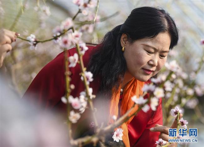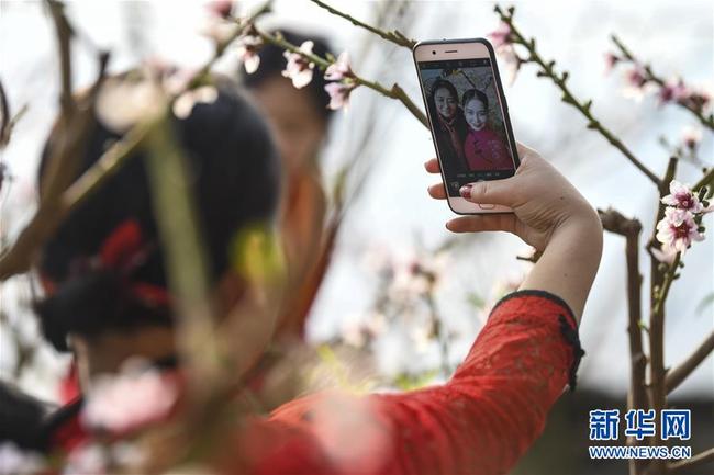 In einem Treibhaus im Dorf Donghu, das zum Landkreis Shanshan im westchinesischen Uigurischen Autonomen Gebiet Xinjiang gehört, fotografierten Touristen eifrig aufblühende Pfirsichblüten. Die prächtigen Blüten bringen den Anwohnern große Freude im kalten Winter.