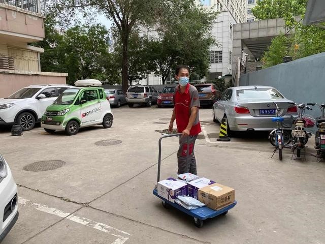 Der 33-jährige Gao Zhongnan kommt aus Qiqiha’er (Provinz Heilongjiang). Er arbeitet als Paketzusteller für das Online-Handelsportal JD.com und ist für die Lieferungen in einem Teil des Beijinger Bezirks Xicheng zuständig. Jeden Morgen um sechs Uhr beginnt er, Pakete zu desinfizieren und anschließend in sein Fahrzeug zu laden. Seit dem erneuten Ausbruch der COVID-19-Epidemie am 11. Juni in Beijing werden viele Wohnviertel streng verwaltet. Wenn er überhaupt hineingelassen wird, muss er seine Körpertemperatur messen lassen und sich namentlich registrieren. Gao Zhongnan sagt: „Das ist notwendig, um die Sicherheit zu gewährleisten.“