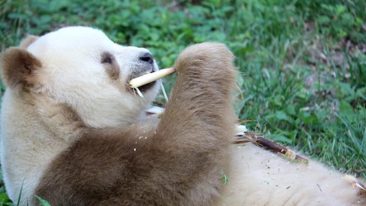 Der einzigartige braune Panda Qizai genießt ein glückliches Leben im Panda-Forschungszentrum Qinling in Xi’an (Provinz Shaanxi). Qizai ist der weltweit einzige in Gefangenschaft lebende braune Riesenpanda. Der elfjährige Panda ist wegen seiner einzigartigen Fellfarbe und seiner niedlichen Art zu essen eine Internet-Berühmtheit. Durch die sorgfältige Pflege der Mitarbeiter des Forschungszentrums ist er noch immer fit und gesund.