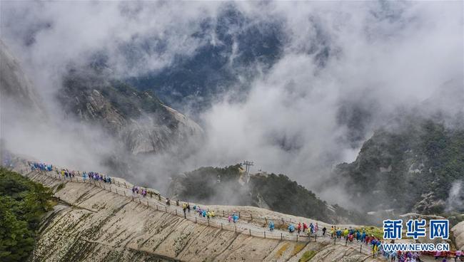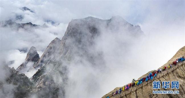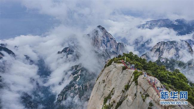 Die wunderschöne Landschaft um den Huashan-Berg im Wolkenmeer in der Provinz Shaanxi hat viele Touristen angelockt.