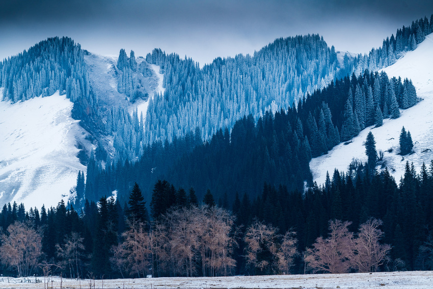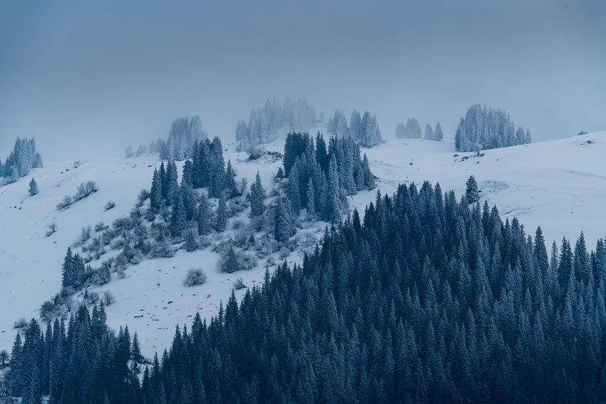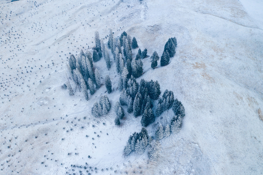 Diese Bilder zeigen das von Schnee bedeckte Tangbula-Grasland im kasachischen Autonomen Bezirk Ili in Xinjiang in Nordwestchina. Das Tangbula-Grasland ist eines der berühmten Grasländer in Ili und wird auch „100-Li-lange Galerie“ genannt. (Li ist ein chinesisches Längenmaß, 1 Li entspricht 0,5 Kilometer) (Fotos von VCG)
