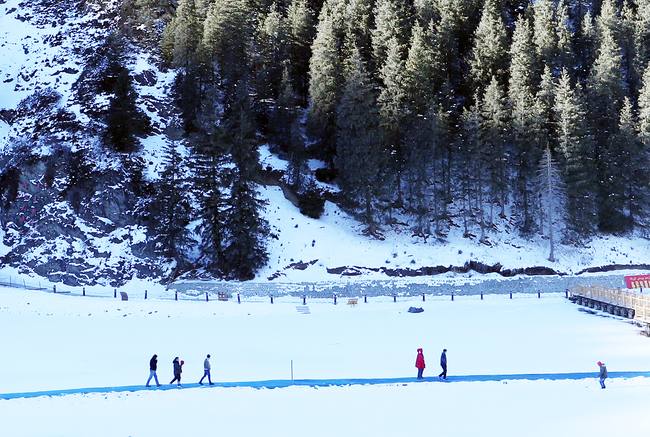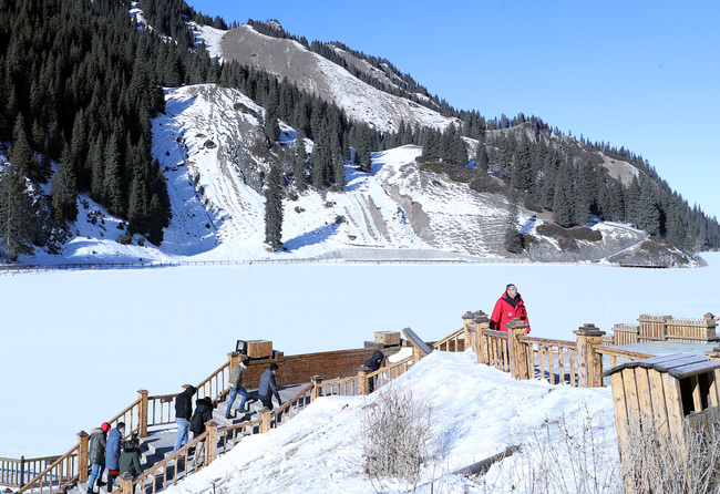 Am Samstag genossen Touristen die Schneelandschaft in der malerischen Tourismuszone Tianshan Grand Canyon in Ürümqi (Uigurisches Autonomes Gebiet Xinjiang), die derzeit wie eine Märchenwelt mit Eis und Schnee aussieht. (Fotos: VCG)