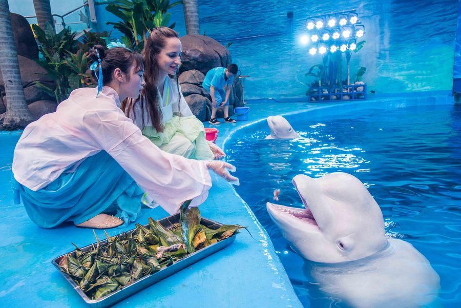 Mit dem Näherrücken des Drachenbootfests genießen die Tiere landesweit in China auch für sie speziell zubereitete „Zongzi“, die in China zu dem traditionellen Fest gegessen werden. Zudem gab es noch frisches Obst, damit sie die angenehmen Sommertage richtig genießen konnten.