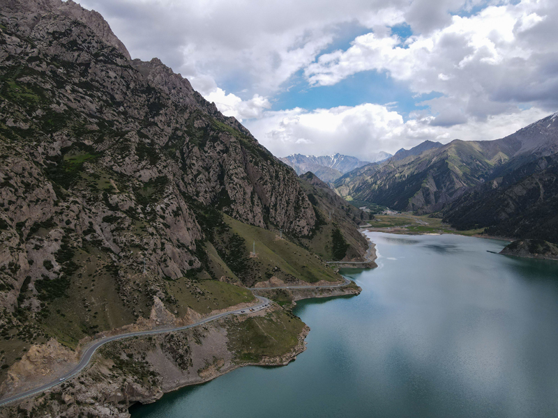 Aus Drohnensicht sehen wir die schönen Landschaften entlang der Nationalstraße 217 in Xinjiang. (Foto: Xinhua / Gao Han)