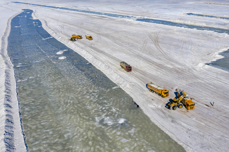 Die Bilder zeigen die Landschaft im Manas-Salzsee in Xinjiang. Vom April bis Oktober ist die beste Saison hier, um Salz zu gewinnen. (Foto: Xinhua / Hu Huhu)
