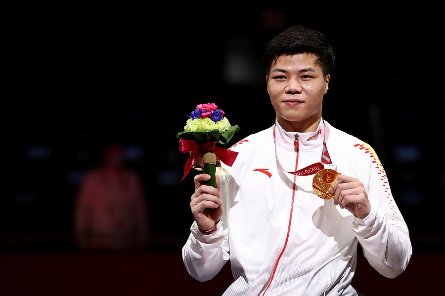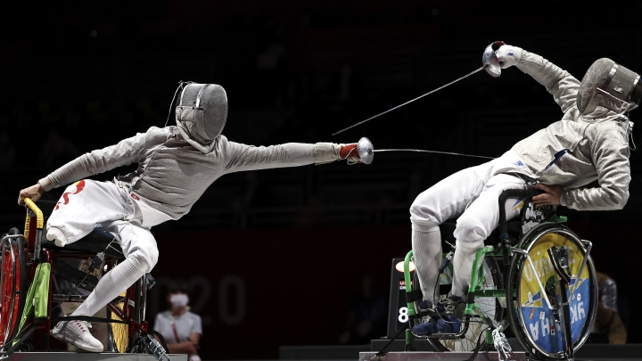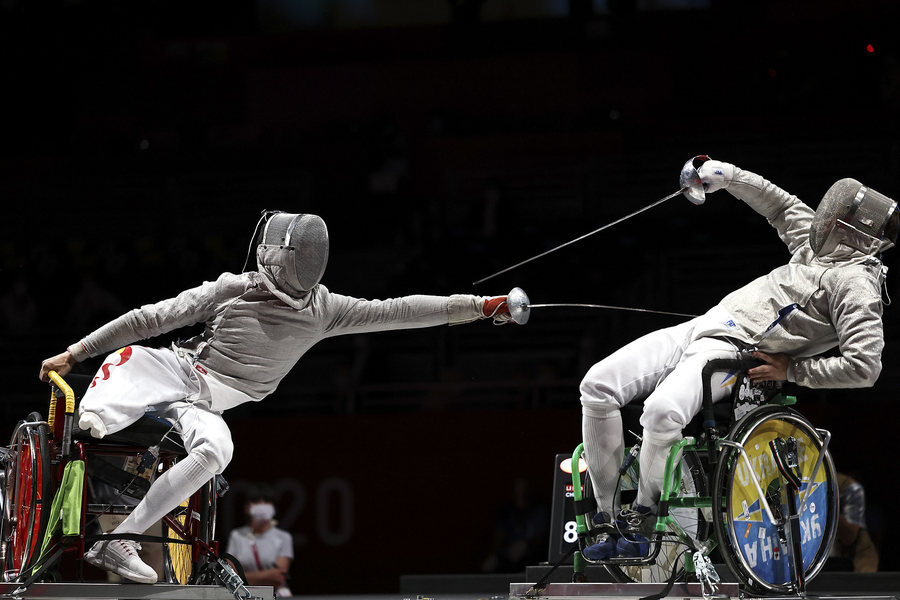 Rollstuhlfechter Li Hao hat am 25. August 2021 Gold im Säbelfechten gewonnen – die erste Goldmedaille für China bei den Paralympischen Spielen in Tokio. (Fotos: VCG)