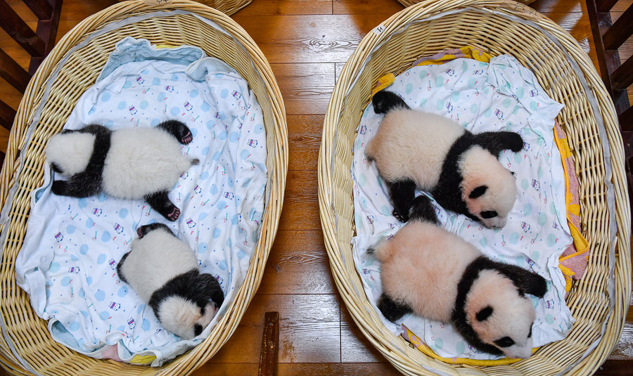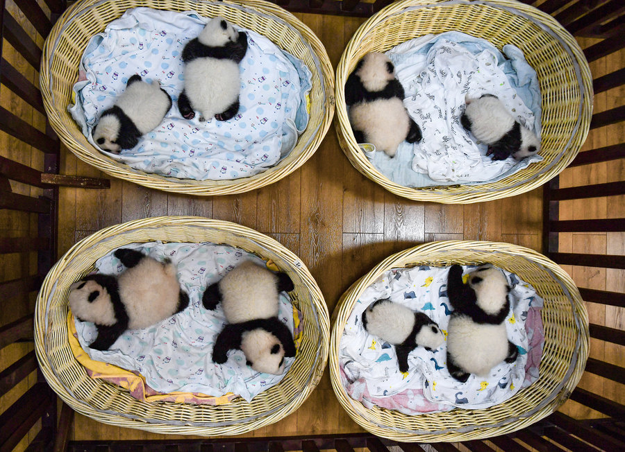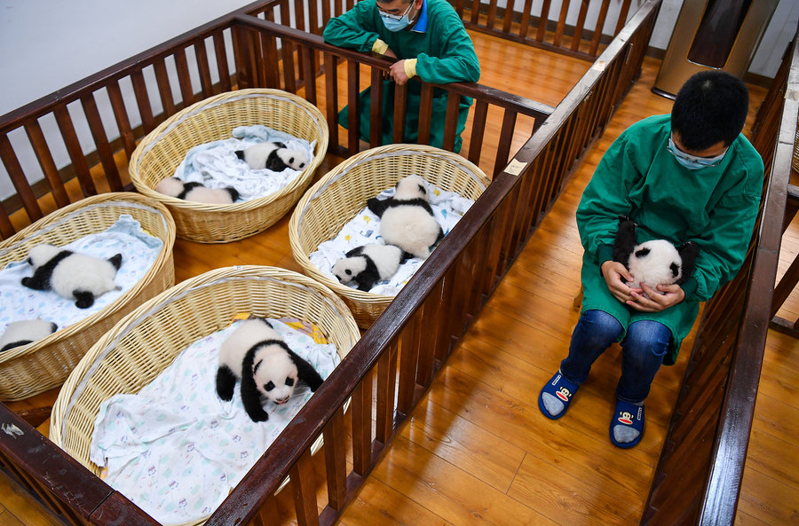 In der Nacht des chinesischen Mittherbstfestes am 21. September brachte der Große Panda „Xiuqiu“ in der Shenshuping-Basis in Wolong (Provinz Sichuan) sicher ein Baby zur Welt. Am 22. September haben die insgesamt acht in diesem Jahr geborenen Panda-Babys zum ersten Mal ein Gruppenfoto gemacht.