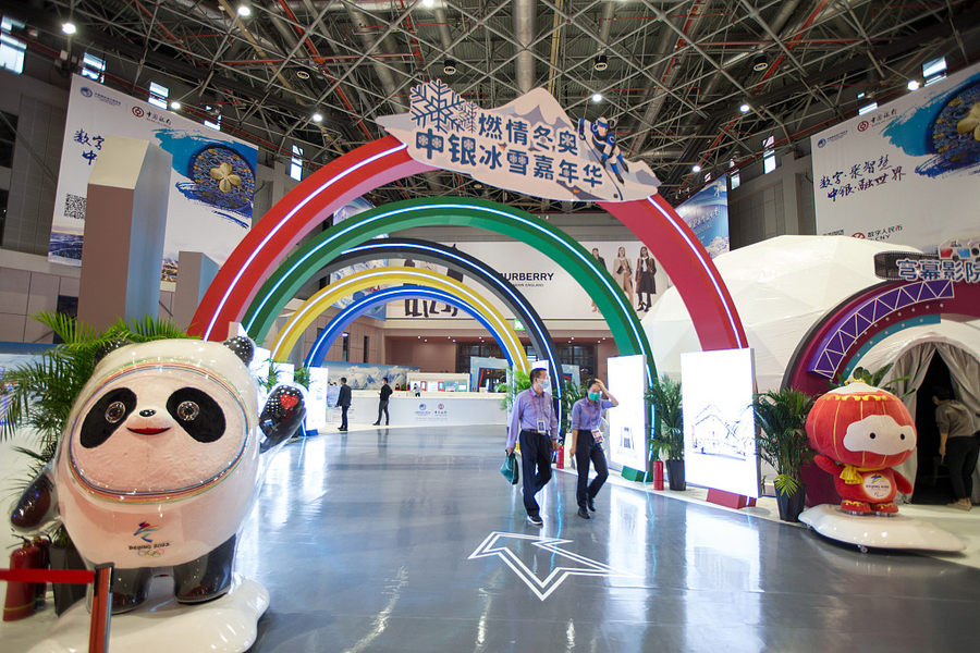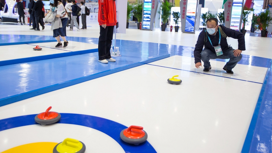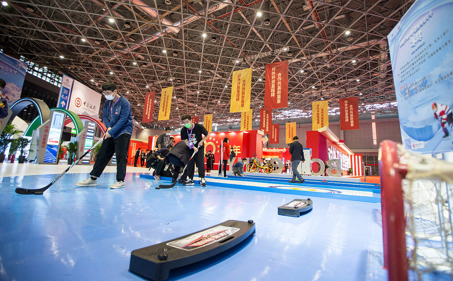 Eine Ausstellung über die Olympischen Winterspiele Beijing 2022 findet auf der vierten Internationalen Importmesse Chinas (CIIE) in Shanghai statt! In dem Ausstellungsbereich mit 1.200 Quadratmetern können die Besucher Curling, Eishockey und andere olympische Sportarten erleben. (Foto / VCG)
