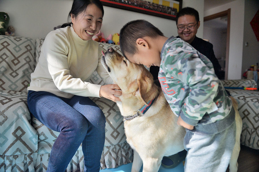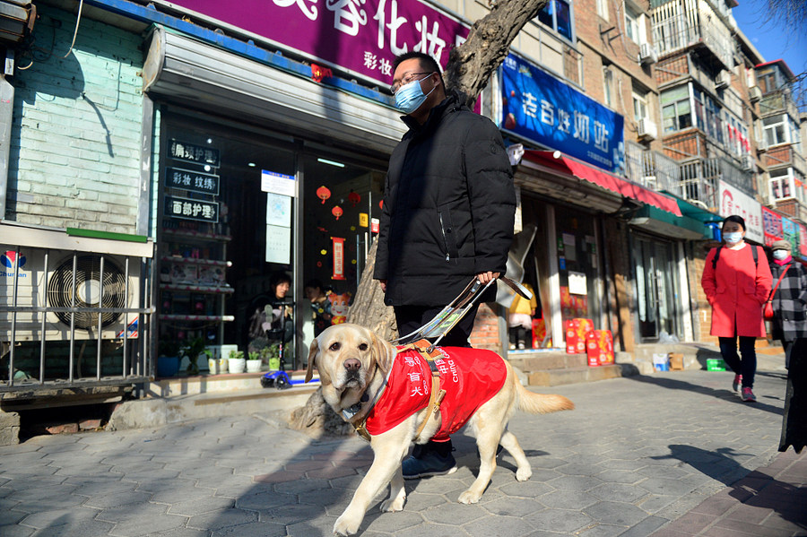Pingping ist die Blindenhündin von Wang Hui aus Tianjin. Mit ihr kann Wang reibungslos ohne Begleitung nach draußen gehen. Pingping ist ein wichtiges Mitglied seiner Familie geworden.