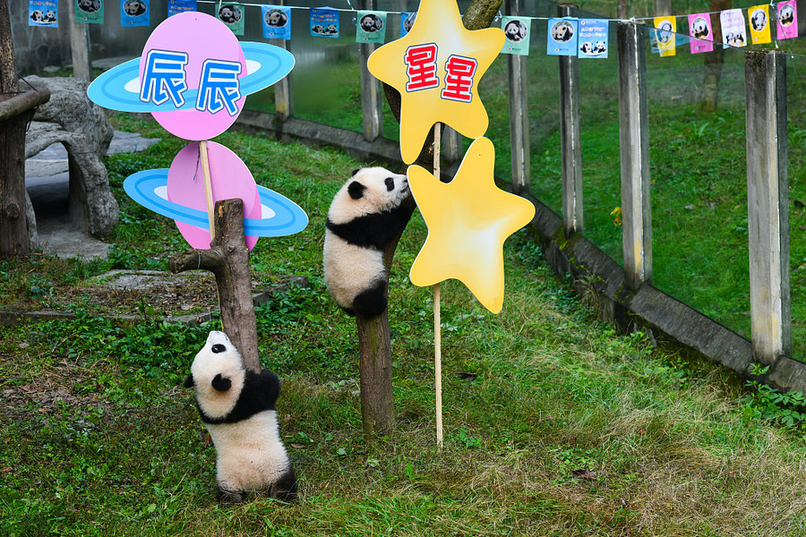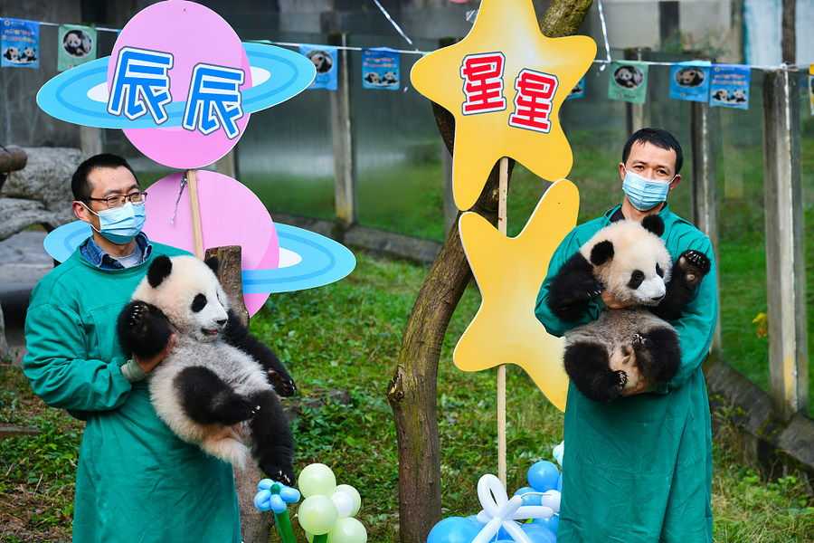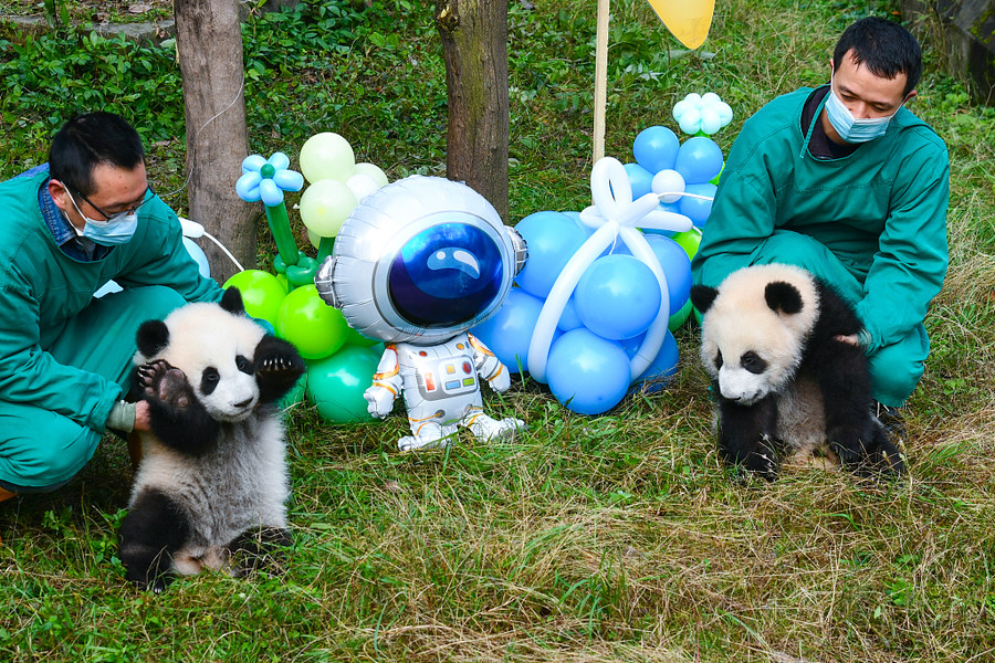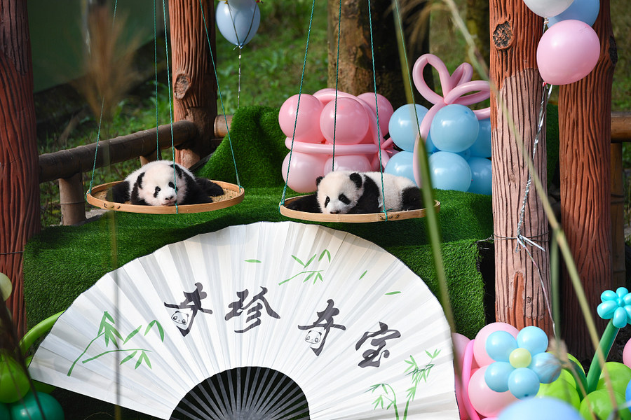 Am Dienstag haben zwei Panda-Zwillinge im Zoo in der südwestchinesischen Metropole Chongqing ihre Namen erhalten. Sie heißen „Qizhen“ und „Qibao“. Die anderen, älteren Nachwuchsbären in dem Zoo heißen „Xingxing“ und „Chenchen“. „Qizhen“ und „Qibao“ wurden am 13. September geboren. Sie wurden zum ersten Mal der Öffentlichkeit vorgestellt. „Xingxing“ und „Chenchen“ wurden am 10. Juni geboren.