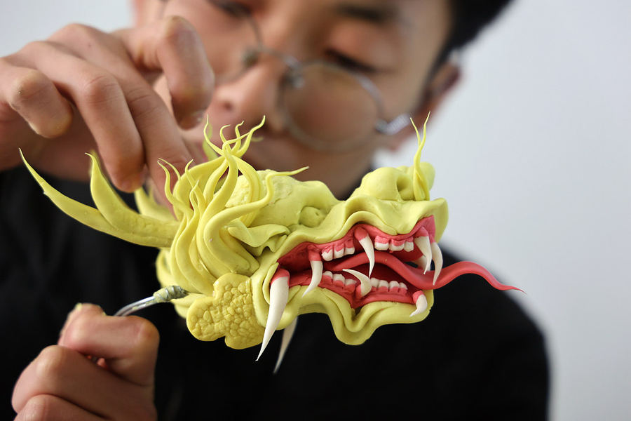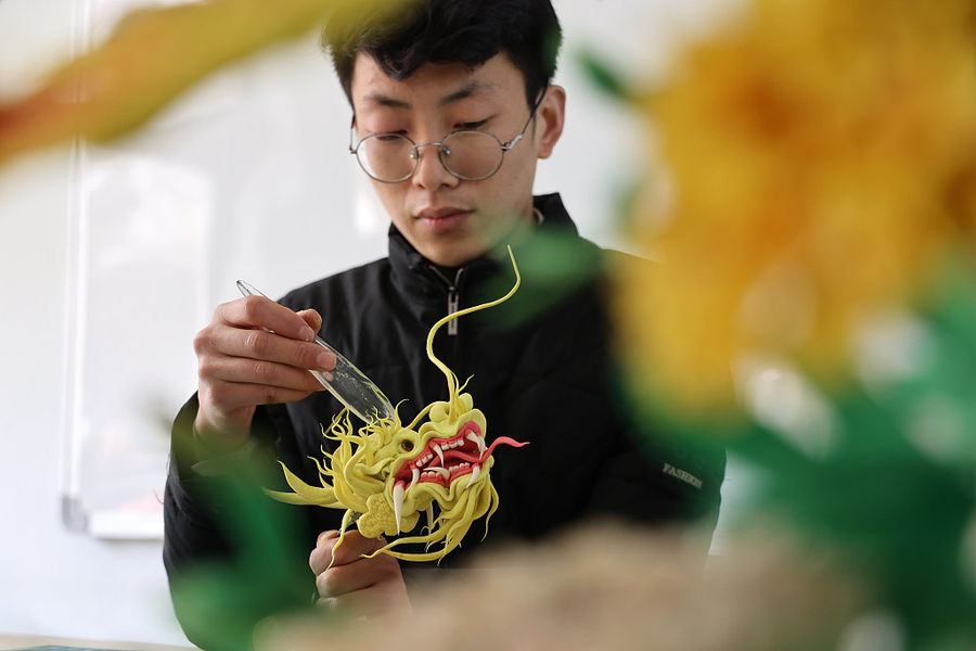 Am zweiten Tag im zweiten Monat nach dem chinesischen Mondkalender wird in China das Fest „Longtaitou", zu Deutsch etwa „der Drache hebt seinen Kopf", gefeiert. Der Legende nach ist der Drache an diesem Tag aus dem Winterschlaf erwacht und brachte als göttliches Wesen den für die Landwirtschaft benötigten Regen. Ein Lehmfigur-Künstler aus Ostchina schafft dafür ein neues Kunstwerk. (Foto / VCG)