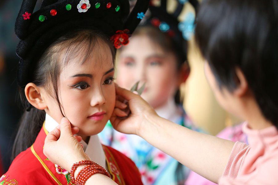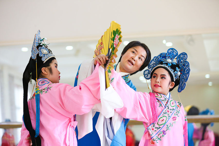 Anlässlich des Welttags des Theaters am 27. März wurde in einer Grundschule in der ostchinesischen Stadt Huzhou ein Kurs über traditionelle chinesische Opern angeboten. Unter Leitung einer Opernkünstlerin konnten Kinder ihre Kenntnisse über chinesische Opern verbessern. (Foto / VCG)