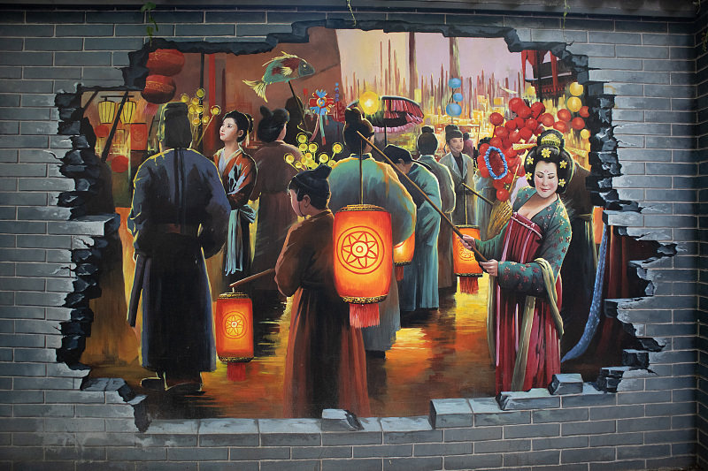 In der Stadt Xi‘an (Provinz Shaanxi) wird seit kurzem eine Reihe von 3D-Wandbildern präsentiert. Die Bilder zeigen Szenen aus dem Leben in der Tang-Dynastie (618 bis 907 n. Chr.).