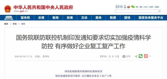 Auch die chinesische Regierung hat mit einem breiten makroökonomischen Regelungsraum den Wiederbetrieb der Unternehmen tatkräftig unterstützt. Auf der Sitzung des Politbüros des ZK der KP Chinas wurde betont, dass unter der Voraussetzung der guten Epidemiebekämpfung der Wiederbetrieb von Unternehmen aller Branchen mit aller Kraft unterstützt und organisiert werden müsse. Es wurden außerdem entsprechende Beschlüsse und Pläne ausgearbeitet. Sowohl die Zentralregierung als auch Lokalregierungen haben Fördermaßnahmen getroffen. In Beijing, Shanghai, Zhejiang und Jiangsu sind ebenfalls gemäß der lokalen Gegebenheiten Unterstützungsmaßnahmen ergriffen worden. Diese Maßnahmen konzentrieren sich hauptsächlich auf Produktionskosten, Finanzen und Steuern sowie die finanzielle Gewährleistung, zum Beispiel Mietermäßigungen, eine Garantie der Beschäftigung, Steuerzahlungsaufschübe und eine Senkung der Finanzierungskosten. All dies dient dazu, die Last von Unternehmen zu reduzieren. In Shanghai wurden zum Beispiel am 8. Februar umfassende Maßnahmen ergriffen, wodurch die lokalen Unternehmen mit einer Kostenermäßigung von mehr als 30 Milliarden Yuan RMB rechnen können.