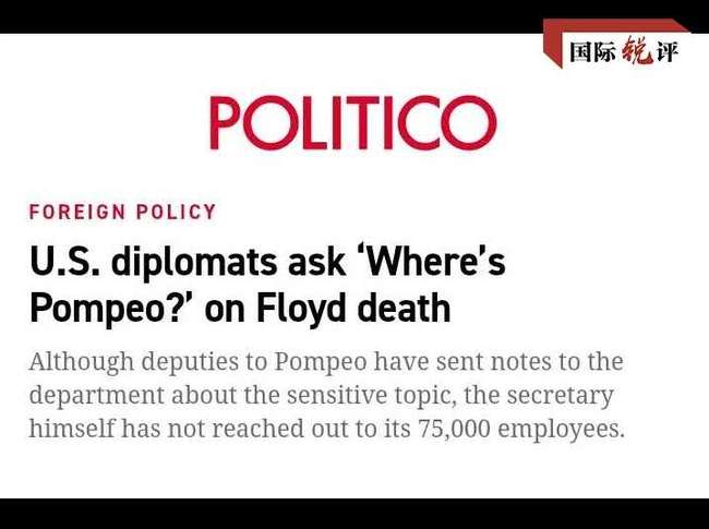 Pompeo betrachtet die Untersuchung des systematischen Rassismus in seinem Land durch den UN-Menschenrechtsrat nicht als beschämend, sondern verteidigt die Debatte nach dem Tod von George Floyd als ein Symbol für die Kraft der Demokratie. Rassismus ist eine tiefsitzende Wunde in der US-Gesellschaft, die sich nicht verheimlichen lässt. Pompeo will über die Diskriminierung aufgrund der Hautfarbe hinwegsehen und schweigt weiter über den Tod von Floyd. Das Nachrichtenportal Politico kritisierte die Abwesenheit von Pompeo in einer so wichtigen Angelegenheit.