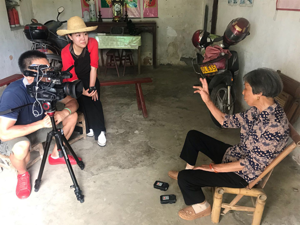 She Shizhen zummsan mit Kollegen der deutschen Redaktion