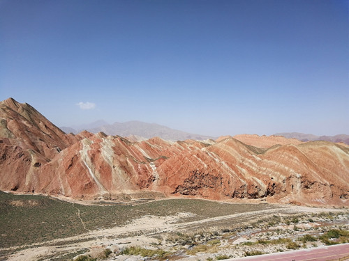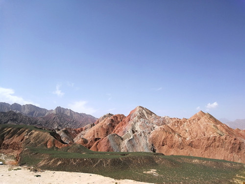 Die glatten und scharf konturierten Berge sind mehrere hundert Meter hoch. Sie erinnern ein wenig an Omas Schichtkuchen, nur ist der nicht so farbenfroh. Diese Landschaft wird mit einigen anderen auf die gleiche Weise entstandenen Sandsteinformationen in China als Danxia-Landschaft bezeichnet. Das chinesische Wort danxia (丹霞) bedeutet in etwa „rote Wolken". Dabei sucht der Zhangye-Danxia-Geoparksucht hinsichtlich der Farbenfreude seinesgleichen. Der Park wurde 2009 zum UNESCO-Weltkulturerbe erklärt und gehört für National Geographic zu den zehn größten geographischen Weltwundern.