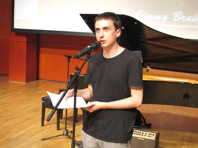Die jungen Wiener Sprachkünstler Elias Hirschl und Jimmy Brainless tourten im April und Mai erfolgreich durch Asien. Eine Station war dabei auch die Deutsche Botschaftsschule Peking. Zum zweiten Mal nach zwei Jahren boten sie den Schülern und Gästen Lieder und Kurzgeschichten voller Wort- und Wahnwitz, Tiefgang und Spaß am Absurden und Abgründigen. Den Zuschauern gefiel's und selbst Deutschunkundige waren beeindruckt von der souveränen Performance der beiden bei diesem „Poetry Slam".