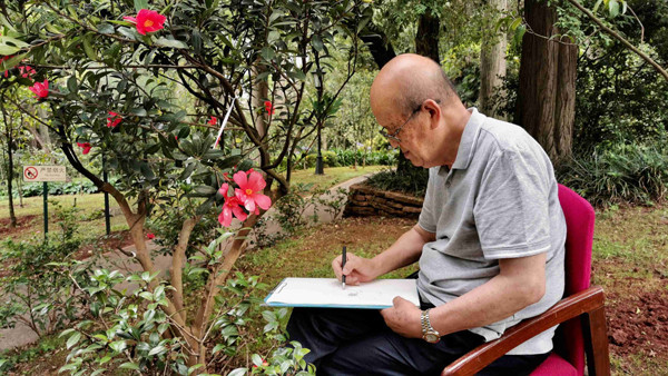 Eines seiner neuesten Meisterwerke ist ein riesiges Gemälde speziell für die Internationale Gartenbauexpo in Beijing. In seinem Werk mit dem Titel „Die Tour der chinesischen Pflanzen" sind 37 Pflanzen zu sehen, die ursprünglich aus China stammen und dann über die ganze Welt verbreitet sind. Um ein so großes Gemälde in kurzer Zeit fertigzustellen, hatte er keine Zeit für einen Entwurf und konnte nur aufgrund eigener Erfahrungen und aus seiner Erinnerung malen. Die Arbeit war nicht einfach für einen 80 Jahre alten Mann.