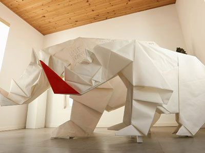Weltweit größtes aus Papier gefaltenes Nashorn