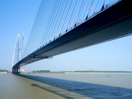 Dies ist ein Bild der großen Qingshan-Brücke über den Jangtse-Fluss in Wuhan vom 9. September