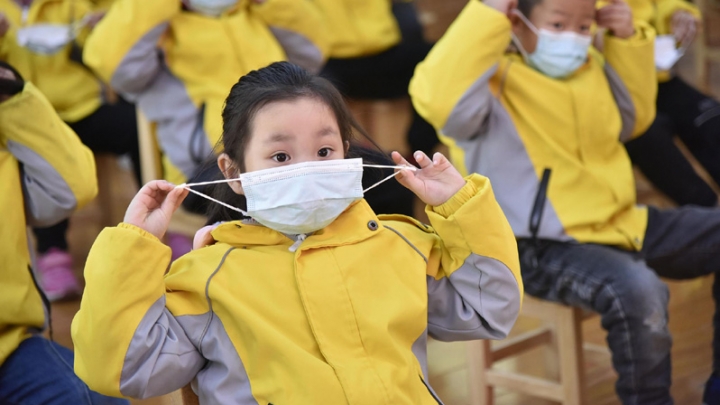 Inmitten der COVID-19-Pandemie haben die Erzieher den Kindern wissenschaftliche Vorbeugungsmaßnahmen gegen die Pandemie erklärt.