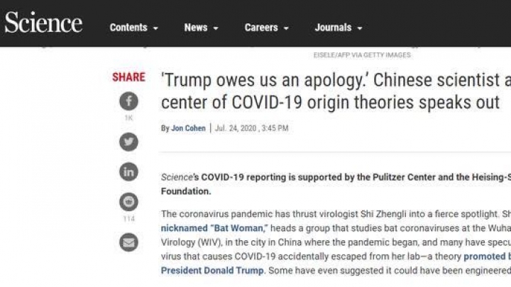 Am letzten Freitag hat die Webseite der Zeitschrift „Science“ einen Exklusivinterview von Shi Zhengli, Expertin des Wuhan Virologie-Forschungsinstituts veröffentlicht. Dabei hat Shi mit ihren Fachkenntnissen diese These zurückgewiesen...