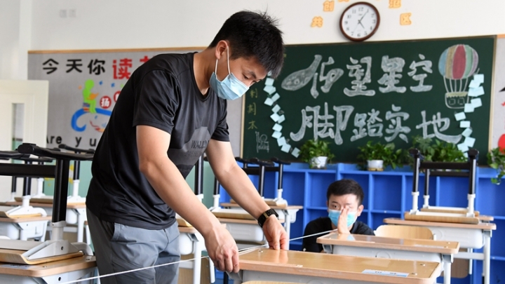 Am 24. August haben die Lehrkräfte der experimentellen Schule im Bezirk Fengtai, die dem Beijinger Pädagogischen Institut untergeordnet ist, geeignete Aktivitätsräume für die Schüler eingerichtet, indem sie Lerntische mit Ein-Meter-Abstand aufstellten ...