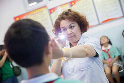 Ke La La, Leiterin der lokalen Augenklinik, führte die Operation an dem jungen Mädchen durch. Jetzt nimmt sie verstärkt medizinische Vorsorgeuntersuchungen an den Grundschulen in einer Nachbarstadt von Urumqi vor.