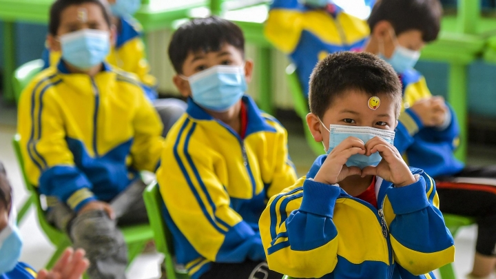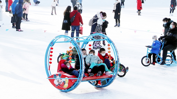 Die Schüler der Stadt Ürümqi im Uigurischen Autonomen Gebiet Xinjiang genießen in Begleitung ihrer Eltern Wintersport in der lokalen Eisbahn und dem Skigebiet der Region