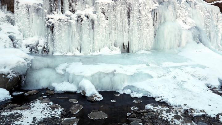 Am Samstag genossen Touristen die Schneelandschaft in der malerischen Tourismuszone Tianshan Grand Canyon in Ürümqi (Uigurisches Autonomes Gebiet Xinjiang), die derzeit wie eine Märchenwelt mit Eis und Schnee aussieht ...