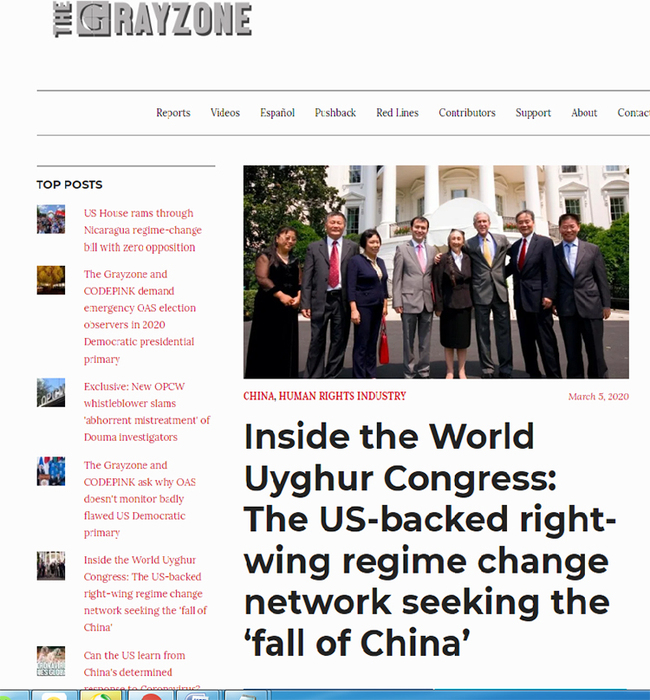 Kürzlich ist ein Artikel mit dem Titel "Innerhalb des Weltkongresses der Uiguren: Das von den USA unterstützte Netzwerk für den rechten Regimewechsel, das den 'Fall Chinas' anstrebt" wurde auf der "Grauzone", einer unabhängigen Nachrichtenwebsite der Vereinigten Staaten, veröffentlicht...