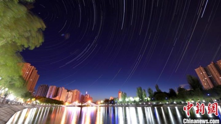In der frühsommerlichen Zeit herrscht in Korla in Bayingolin im westchinesischen Uigurischen Autonomen Gebiet Xinjiang in diesen Tagen ein sonniges Wetter. Das Panorama am Flussufer scheint wie ein wunderschönes Landschaftsgemälde