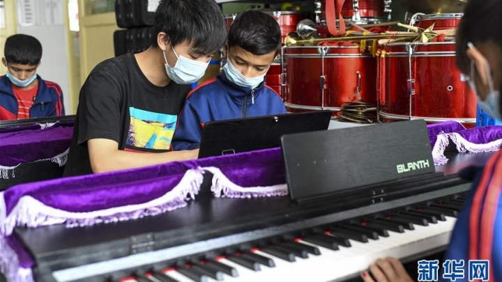 Am 16. Mai probten Mitglieder des Schulensembles in der Schule Bakedun in der Gemeinde Tawakule im Landkreis Hotan im westchinesischen Uigurischen Autonomen Gebiet Xinjiang.Die Grundschule befindet sich im Hinterland der Taklamakan-Wüste ...