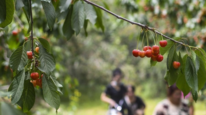 Am 25. Mai verkauften die lokalen Landwirte Kirschen in einem Kirschgarten im Dorf Xiamalebage im Landkreis Yarkant im westchinesischen Uigurischen Autonomen Gebiet Xinjiang. Jetzt Ende Mai sind rote Kirschen an den zahlreichen Kirschbäumen in dem großflächigen Kirschgarten ...