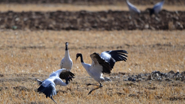 Im winterlichen Sonnenschein tummeln sich Schwärme von Vögeln an den Flüssen und in den Feuchtgebieten im Kreis Lhundrup in Lhasa im chinesischen Autonomen Gebiet Tibet. Lhundrup hat in den vergangenen Jahren durch harte Arbeit ein Paradies...