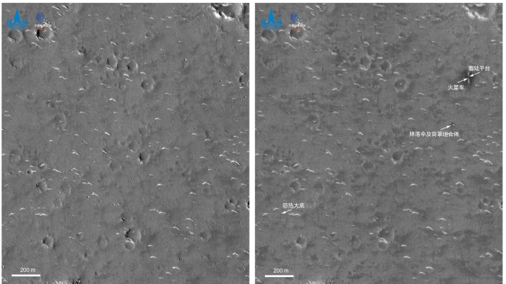 Die Bilder wurden von der hochauflösenden Kamera des Orbiters „Tianwen-1“ am 2. Juni um 18:00 Uhr Beijinger Zeit aufgenommen. Bis zum Sonntag hat der Rover „Zhurong“ schon 23 Marstage auf der Oberfläche des Roten Planeten gearbeitet und Umweltuntersuchungen, ...