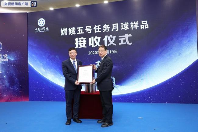 Eine Übergabezeremonie für die von der chinesischen Mondsonde „Chang‘e 5“ entnommenen Mondproben an das Bodenanwendungssystem hat am Samstag in Beijing stattgefunden...