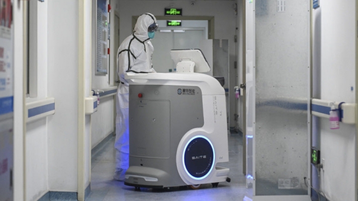 „In diese ungewöhnlichen Zeiten müssen Sie unbedingt Schutzmasken tragen, oft Hände waschen und auf persönliche Gesundheit achten“. Auf den Fluren des Shijitan-Krankenhauses geht ein smarter Roboter auf und ab und wiederholt diesen Satz...